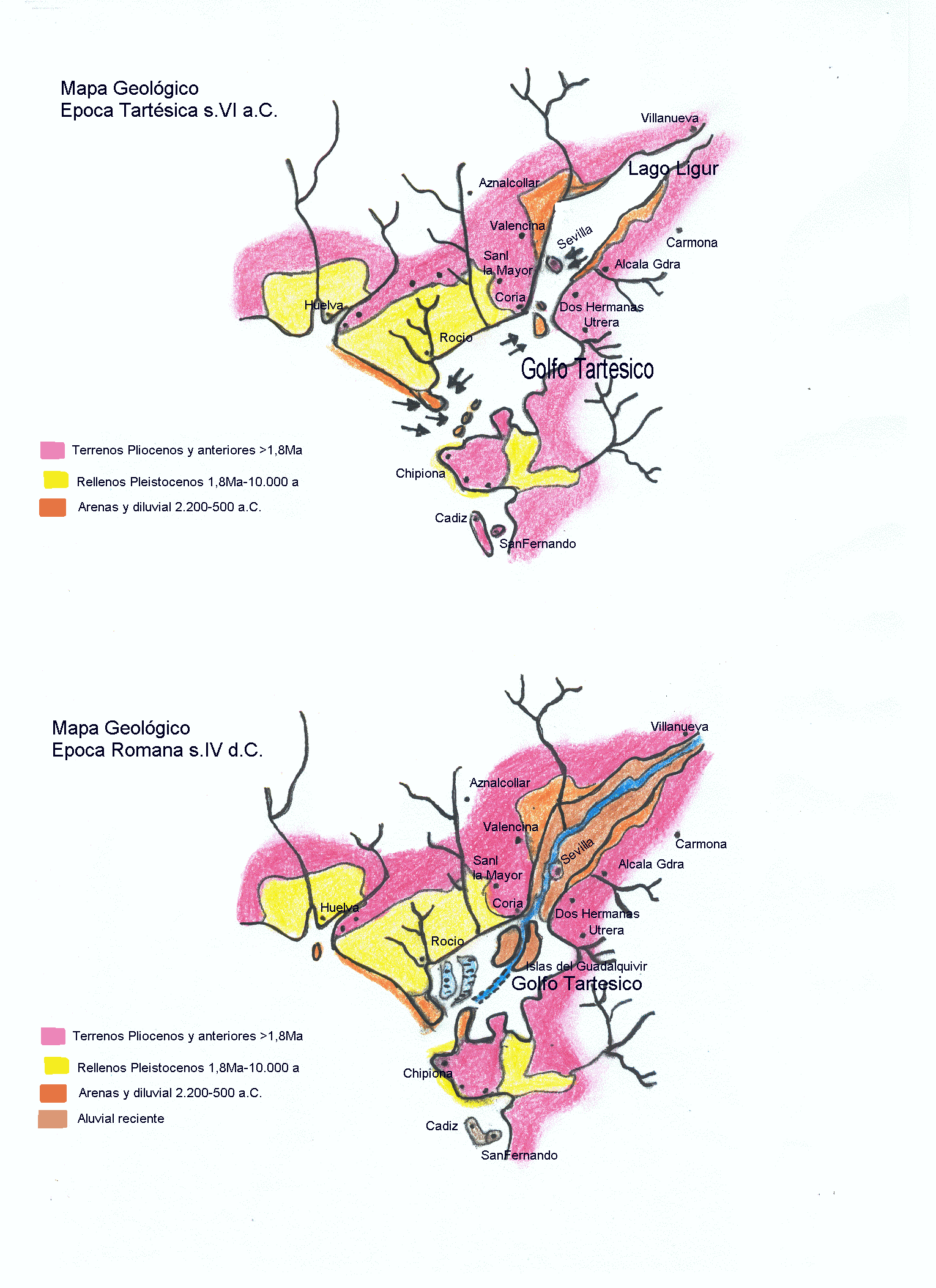 Durante el siglo IV el canal se fue rellenando por lo que las islas comenzaron a unirse: la antigua Eritheia y la Neápolis de Balbo, a través de una franja pantanosa y malsana. La acumulación de materiales se debe también a la alteración de las orillas del río Guadalquivir y del Guadalete que hicieron que Cádiz quedase aislada y carente de interés